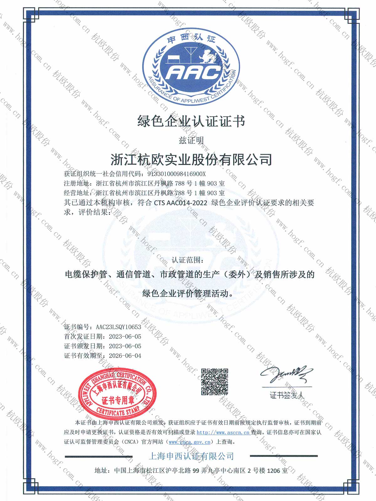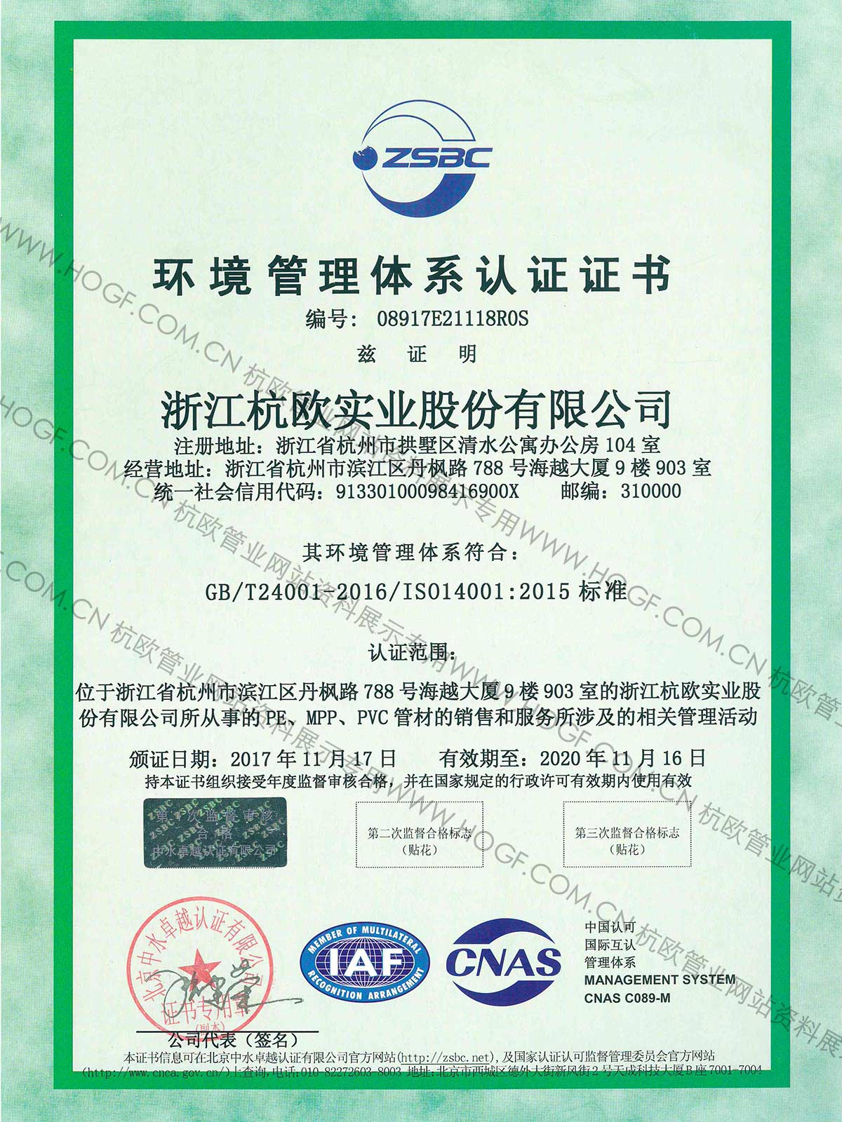 绿色企业认证证书
