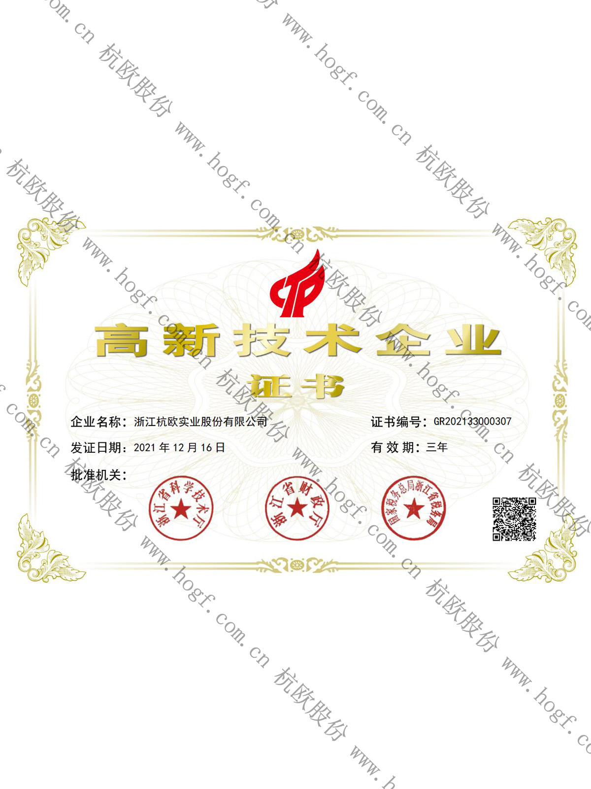 高新技术企业证书