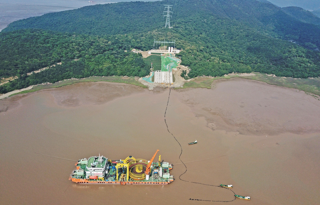 6月2日,从宁波镇海端入海的最后一根500千伏海底电缆,历时5天4夜,成功登陆舟山大鹏山岛,标志着世界首个500千伏交联聚乙烯海缆敷设工程顺利完工,创造我国海洋输电史上又一项纪录。